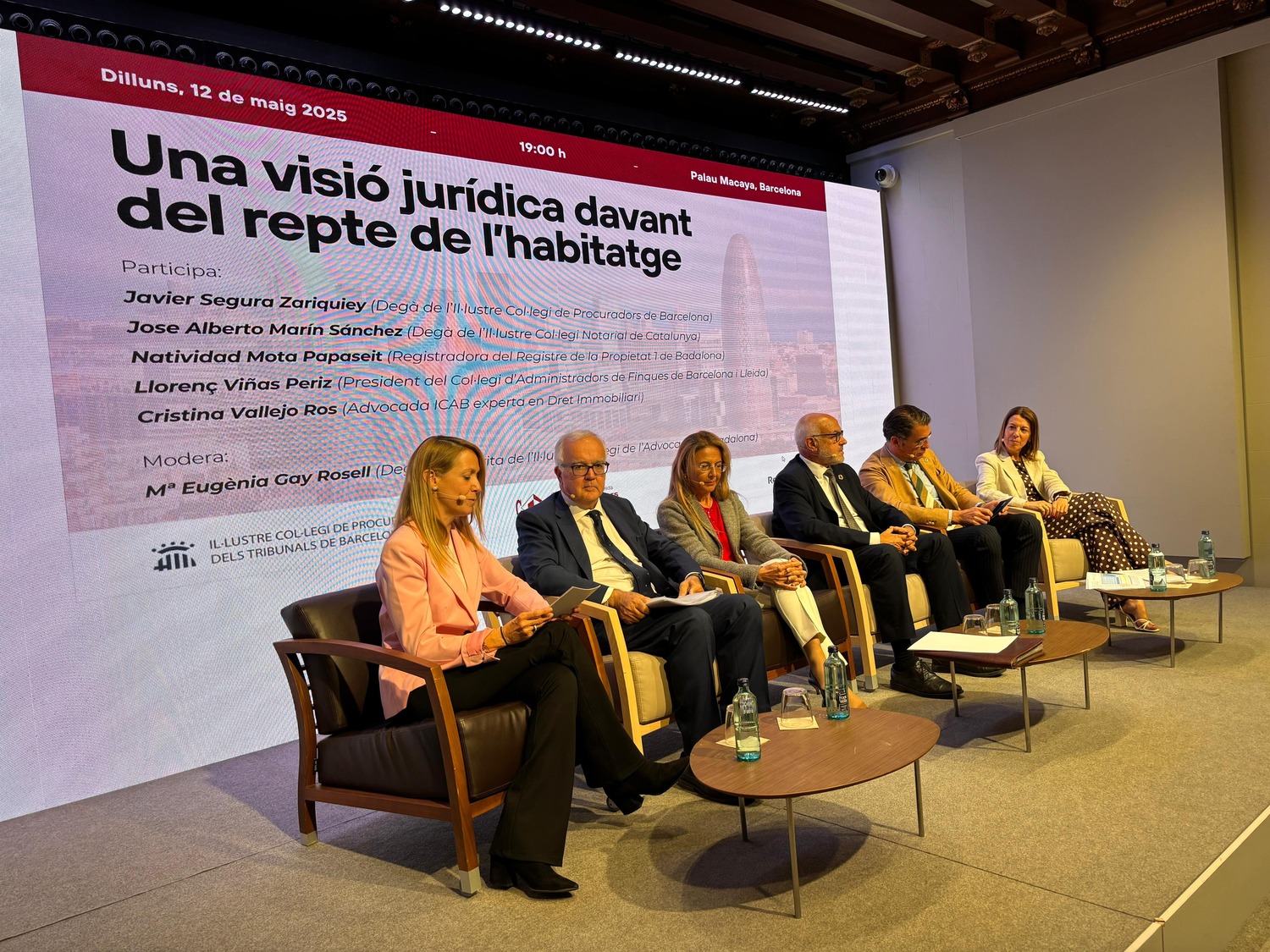 El degà del Col·legi de Procuradors dels Tribunals de Barcelona (ICPB), Javier Segura Zariquiey, ha estat un dels ponents de la taula rodona ‘Una visió jurídica davant el repte de l’habitatge’, celebrada al Palau Macaya el 12 de maig. La resta de participants han estat l’advocada del Col·legi de l’Advocacia de Barcelona (ICAB) i experta en Dret Immobiliari, Cristina Vallejo, el degà del Col·legi Notarial de Catalunya, José Alberto Marín, la registradora del Registre de la Propietat número 1 de Badalona, Natividad Mota, i el president del Col·legi d’Administradors de Finques de Barcelona i Lleida, Llorenç Viñas, en un acte moderat per la degana emèrita de l’ICAB, Mª Eugènia Gay.